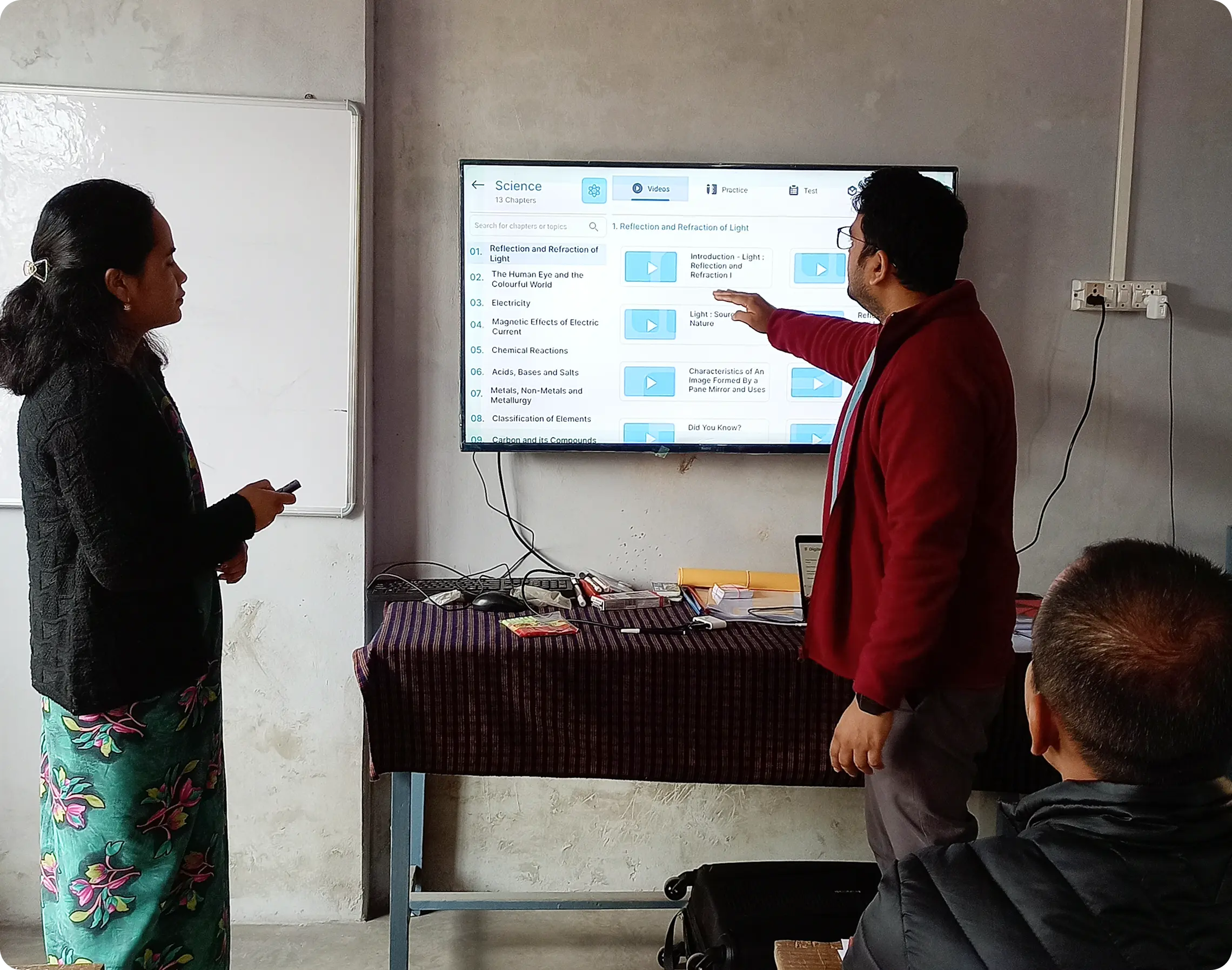 We partner for end-to-end program management that delivers measurable impact in school education. From baseline to setup, teacher training, ongoing support, and impact reporting, we ensure every project creates real change. Our focus is on improving grade-level outcomes through Personalised Learning for students and Smart Classrooms for teachers, powered by curriculum-aligned digital content in English and local languages